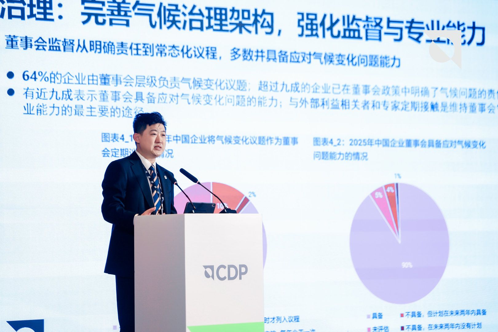 CDP 中国区市场总监李蜚则从治理 、战略、风险管理、指标及目标四大支柱,拆解中国企业气候披露核心表现 ,展现企业气候管理能力的系统性升级 。